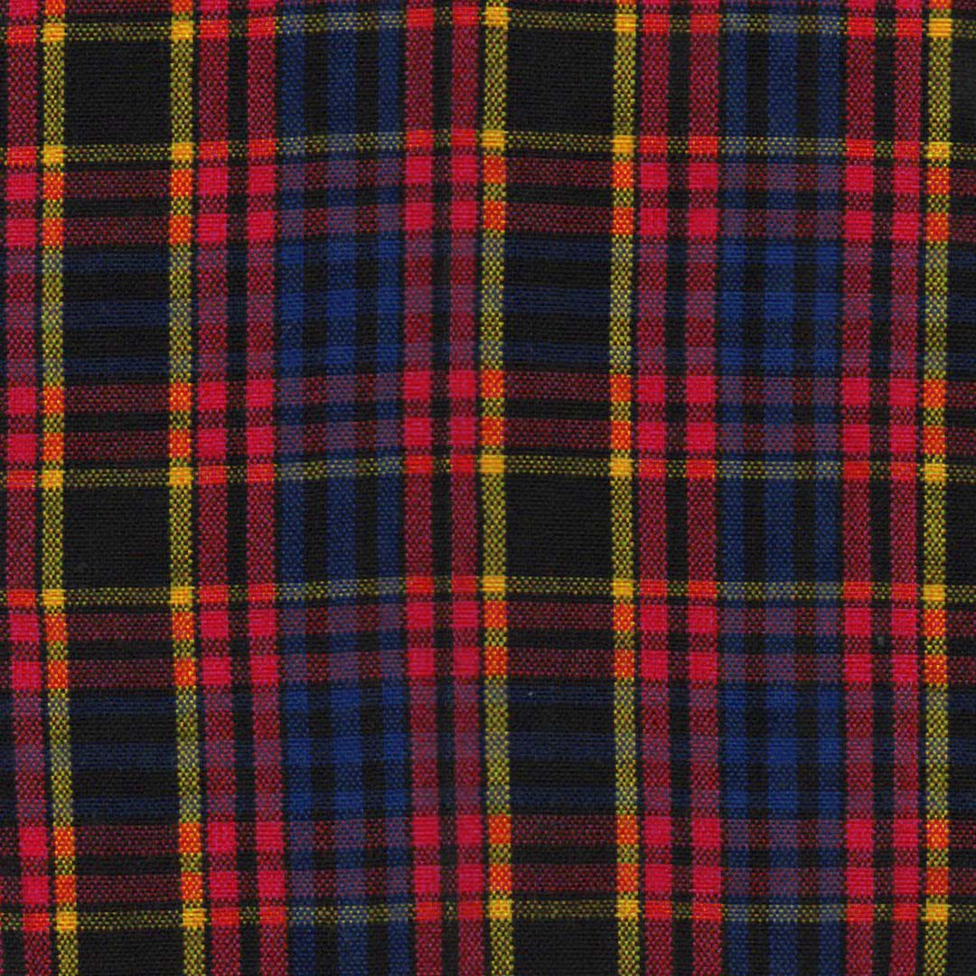 Tela de uniforme escolar en acrílico con tejido en diseño escocés en colores azul, amarillo y rojo con líneas y cuadros en negro, ideal para pantalones o faldas de uso diario y constante gracias a su resistencia y gran durabilidad.